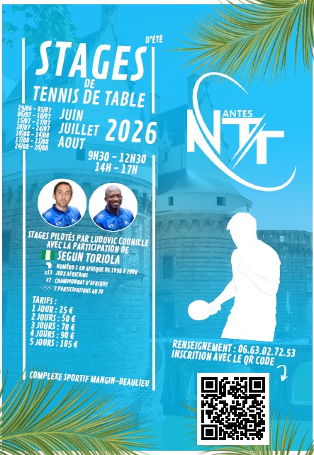 Doté de la plus grande salle spécifique de Tennis de Table de Loire Atlantique et d’un encadrement de qualité, NANTES Tennis de Table propose à toutes les personnes aimant jouer avec la petite balle de nous rejoindre dans un contexte sportif ou loisir.